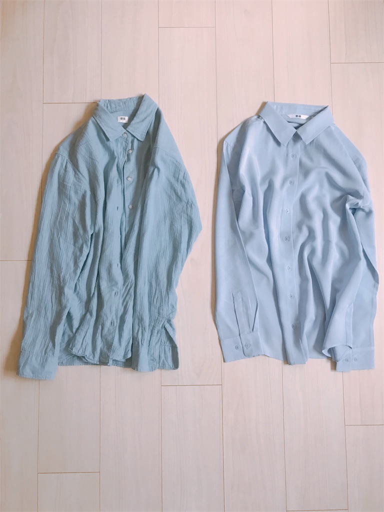 ▼左が今着ているフランネルシャツ、右が今回買ったレーヨンエアリーブラウスです。