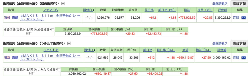 昔は、米国やら新興国やら色々買っていましたが、新NISAで購入している投資信託はeMAXIS Slim全世界株式(オールカントリー)のみになりました。